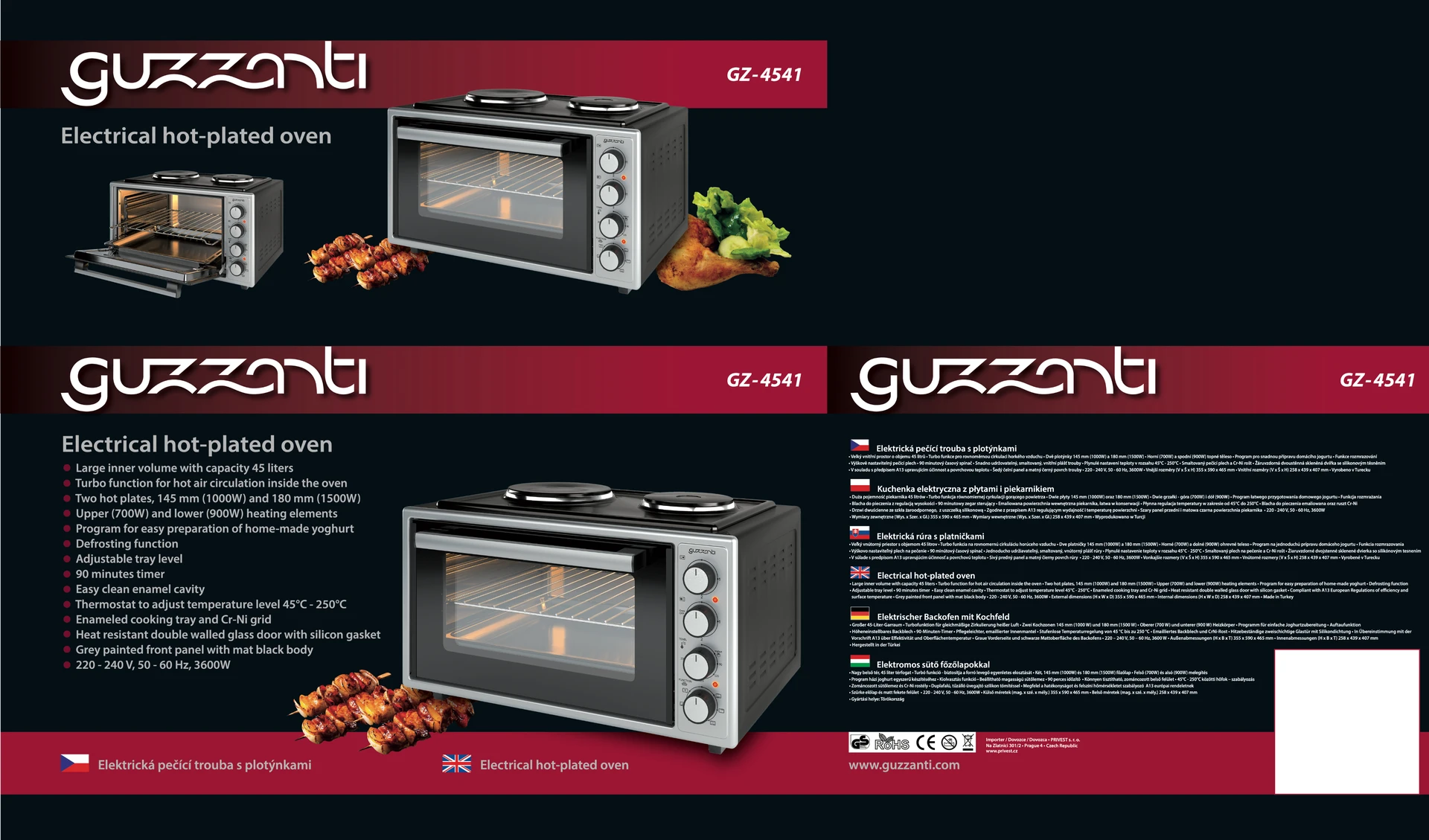 - Two hot plates, 145 mm (1000W) and 180 mm (1500W)