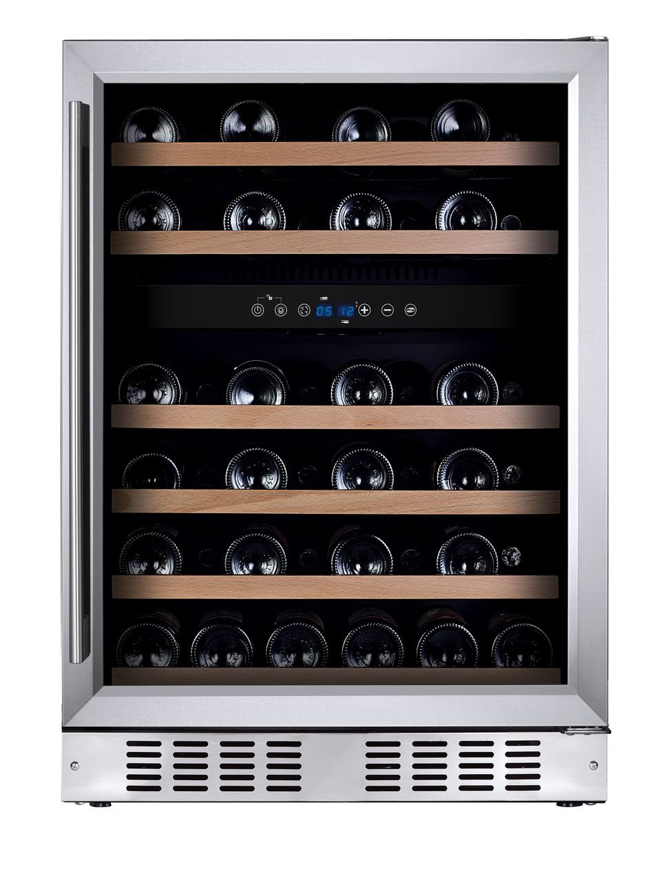 Compressor built-in wine cooler, capacity of 46 bottles.