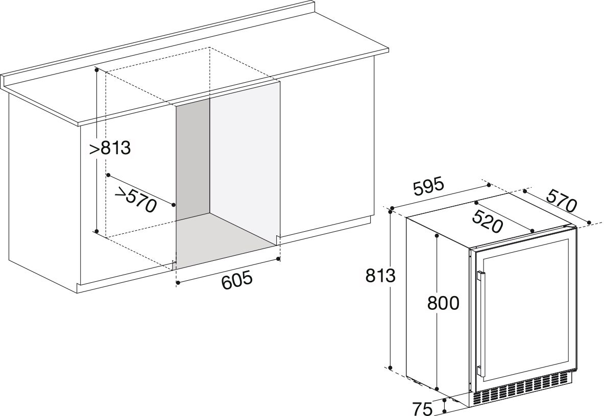 - Storage capacity up to 46 bottles of wine (145 l)